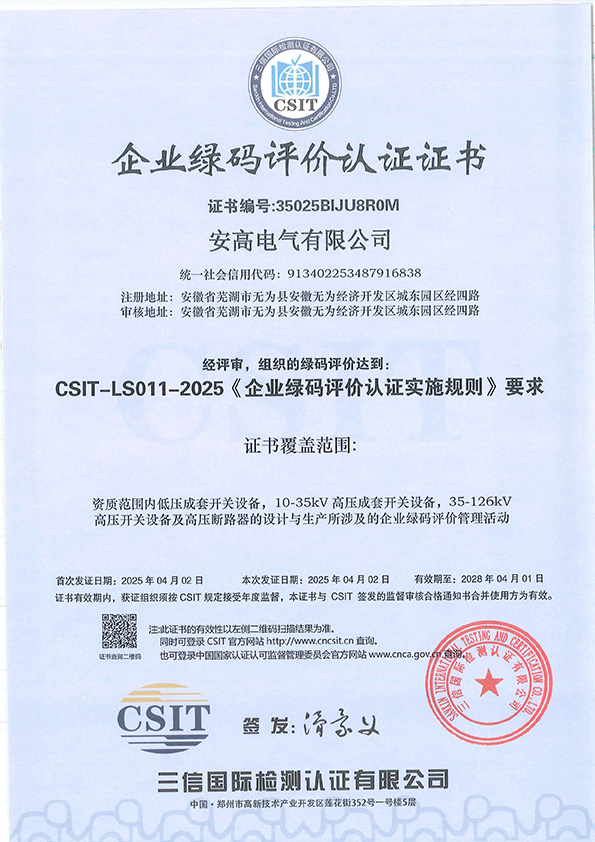 企業(yè)綠碼評(píng)價(jià)認(rèn)證證書(shū)