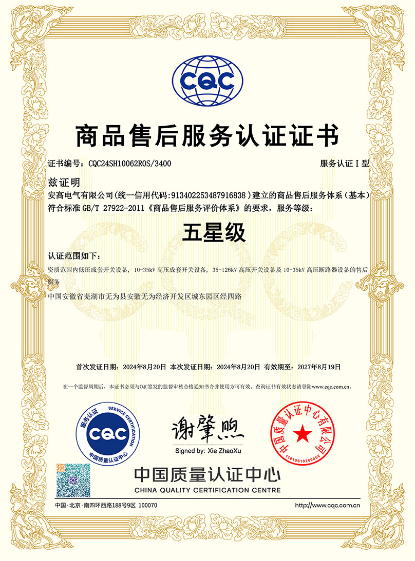商品售后服務(wù)認(rèn)證證書(shū)
