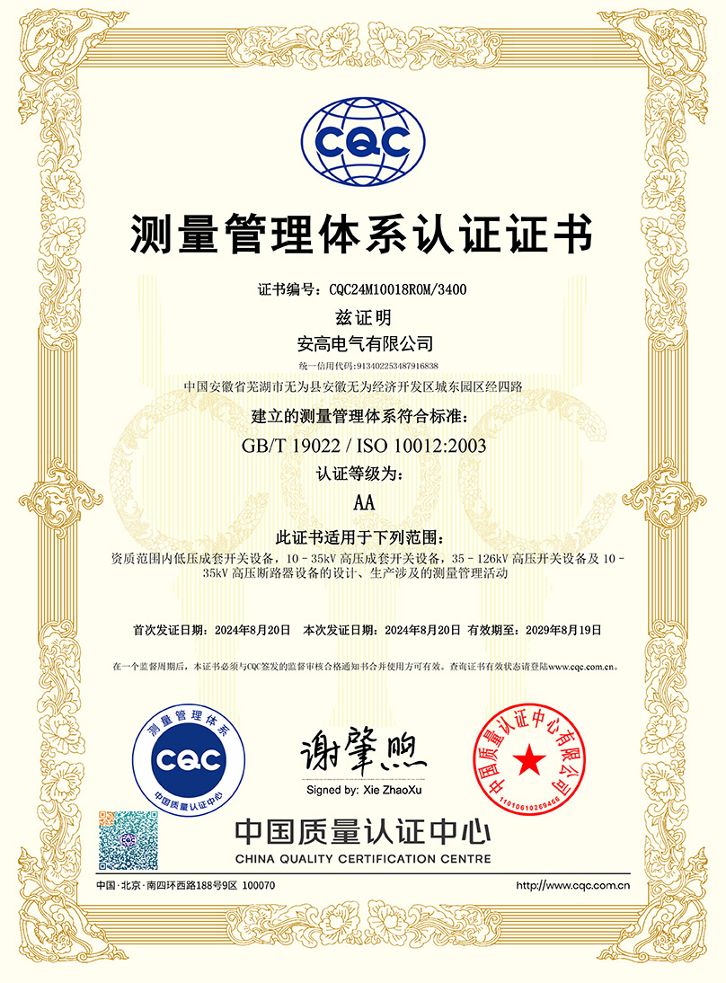 測(cè)量管理體系認(rèn)證證書(shū)