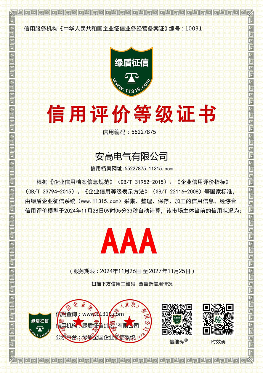 信用評(píng)價(jià)等級(jí)證書(shū)