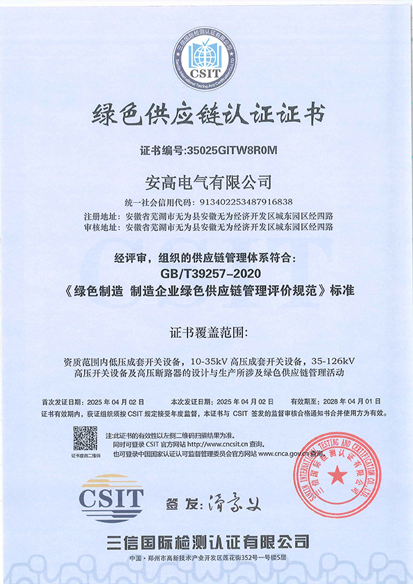 綠色供應(yīng)鏈認(rèn)證證書(shū)